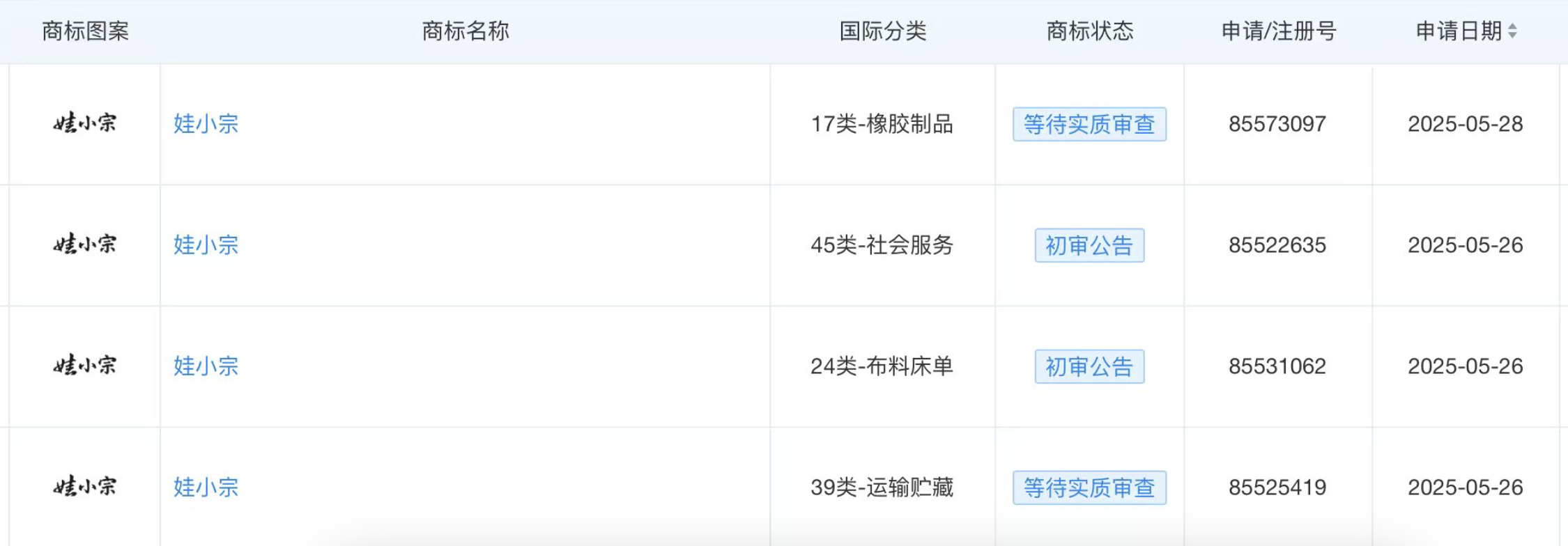 據(jù)標(biāo)鴿知產(chǎn)了解,宗馥莉執(zhí)掌下的娃哈哈正在嘗試換標(biāo)、關(guān)停工廠、渠道等。9月,一份娃哈哈《關(guān)于開展2026銷售年度經(jīng)銷商溝通工作的通知》流出,通知顯示,為維護(hù)“娃哈哈”品牌使用的合規(guī)性,娃哈哈集團(tuán)決定從2026年新的銷售年度起,更換使用新品牌“娃小宗”。 查詢顯示,今年以來,宏勝飲料集團(tuán)有限公司已申請注冊多枚“娃小宗”“宗小哈”“娃小哈”商標(biāo),國際分類